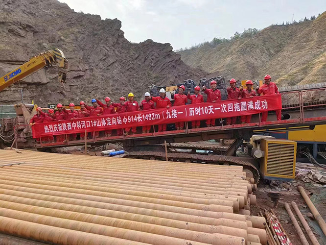 热烈庆祝陕中科国内最大口径最长距离山体定向钻【九接一】穿越工程一次回拖圆满成功
