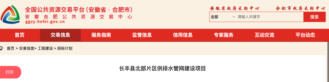 1.长丰县北部片区供排水管网建设项目招标计划