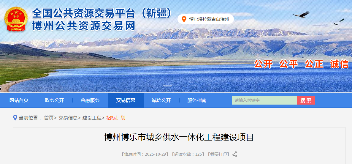 项目名称:博州博乐市城乡供水一体化工程建设项目