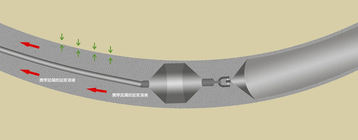 这是泥浆的基本功用之一,是把钻头或扩孔器破碎的泥(岩)屑带出孔道,保持孔道清洁,以利于管道回拖。