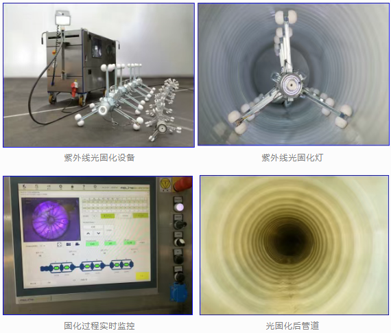 紫外光原位固化法:采用紫外光照射固化树脂软管,施工速度更快,适用于300—1500mm管道。在南码头三林等区域排水管道修复完善工程中,通过紫外光原位固化法修复后,管道内壁光滑,摩擦系数降低,管道流量得到增加。